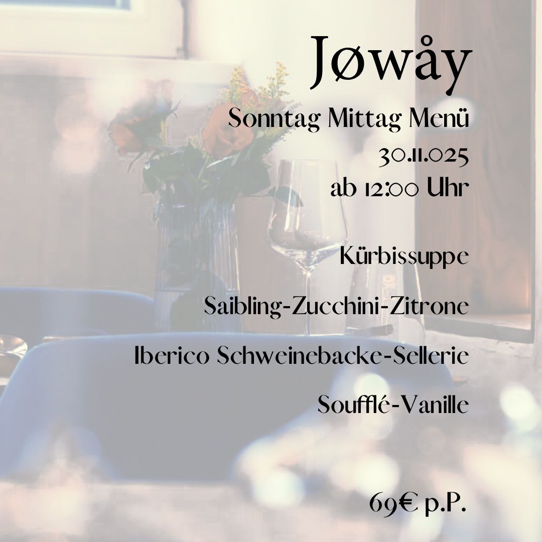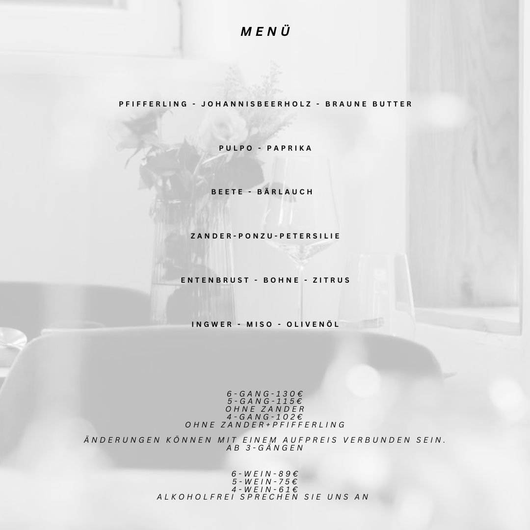 Genießt ein kleines schönes Menü am 30.11. ab 12 Uhr. Für 69€ verwöhnen wir euch in entspannter Atmosphäre.